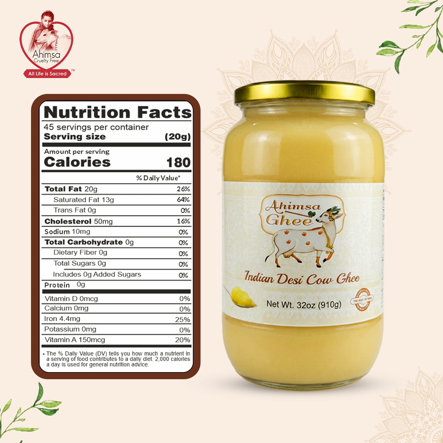 Ahimsa Pure A2 Desi Cow Cultured Ghee, 32oz